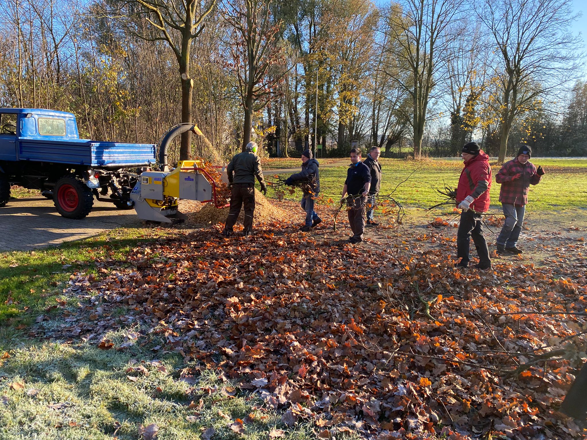 Ein weiterer wichtiger Schwerpunkt war die Pflege unserer Bäume. Mit Hilfe eines leistungsstarken Häckslers wurden Äste und Schnittgut fachgerecht zerkleinert und anschließend entsorgt. Durch diesen Einsatz konnten wir nicht nur die Sicherheit auf dem Gelände erhöhen, sondern auch einen wichtigen Beitrag zur Pflege unseres Vereinsareals leisten.